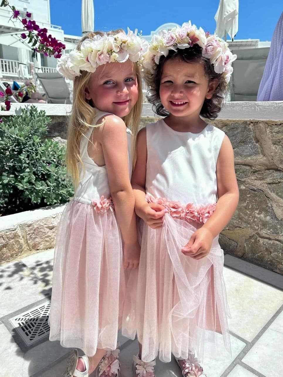 For a touch of royalty, the Ebony Crown is available for children and includes hydrangea and wax flower. The Baby Headband features hydrangea and wax flower.