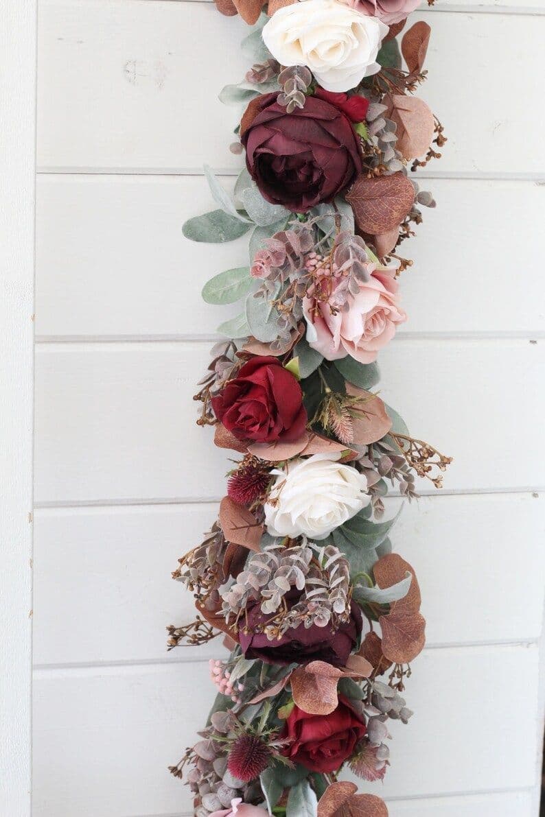 6ft Garland: Flocked eucalyptus, ruscus, and coordinating flowers