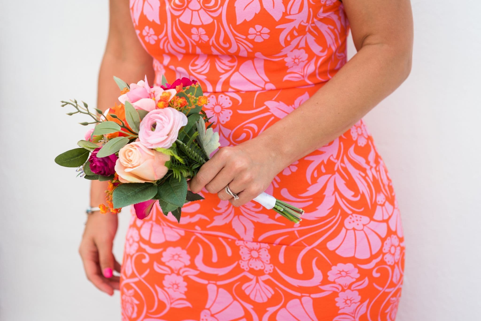 Artificial Bright Pink and Orange Wedding Bouquet – Fuchsia, Peach & Hot Pink Faux Bridal Flowers