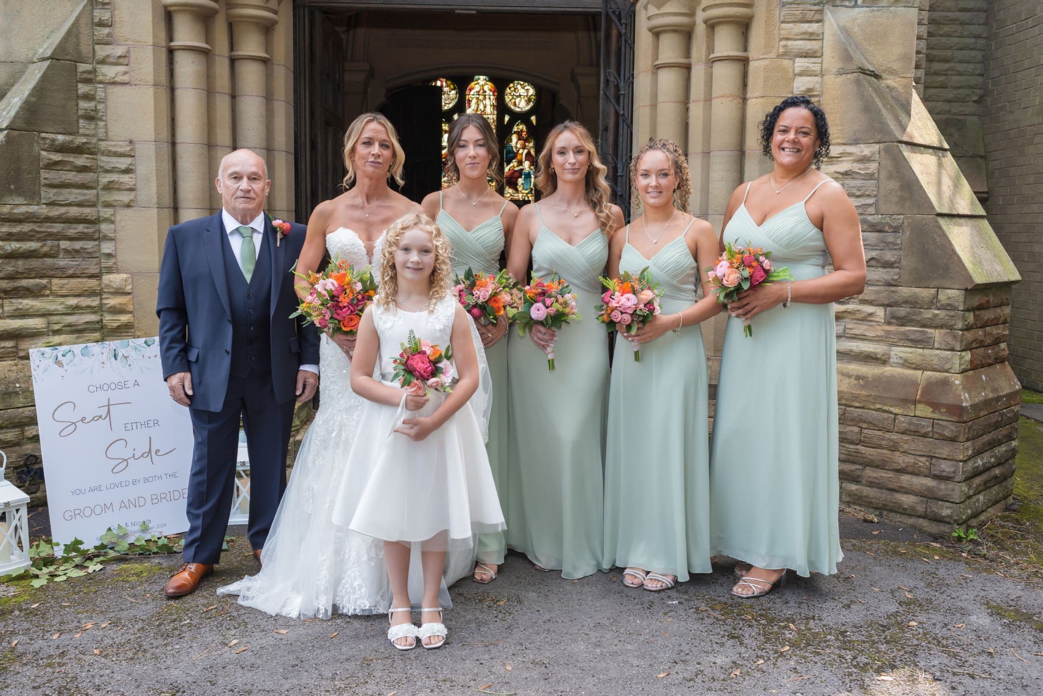 Corsage: A blend of buttonhole flowers, enhanced with satin ribbon